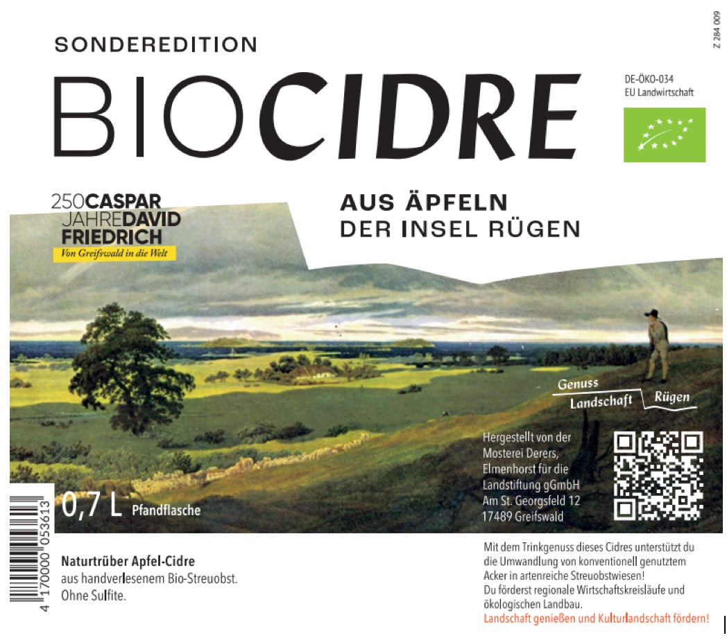 Unser Bio-Cidre ist ein Cuvée aus handverlesenen Bio-Streuobstäpfeln alter Sorten und Demeter-Äpfeln vom Obstparadies Altkamp im Süden der Insel Rügen. Gemeinsam mit der Mosterei Derers aus Elmenhorst bei Stralsund, haben wir experimentiert und probiert - mit dem Ergebnis eines Cidres, der mit seiner leuchtend hellgoldenen Farbe, vielschichtigen Apfelaromen, ausgewogener Restsüße und fein-perlenden Frische überzeugt! Gut gekühlt als Apéro vor dem Essen, als leichte Speisebegleitung z.B. zu Flammkuchen, Fisch und vielem mehr – oder einfach als Durstlöscher am Strand!